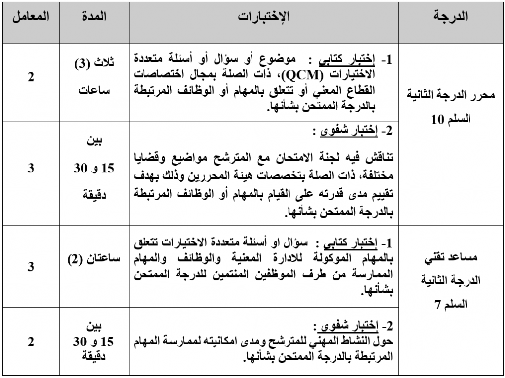 تاريخ الإمتحان لولوج درجة محرر الدجة الثانية السلم 10 ودرجة مساعد تقني من الدرجة الثانية السلم 7: السبت 03 دجنبر 2022 إبتداء من الساعة العاشرة صباحا